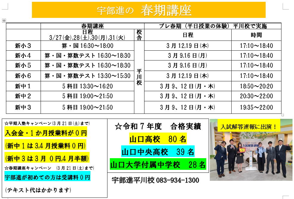 これを機に、合格実績地域NO,1の宇部進の授業を体験してください!