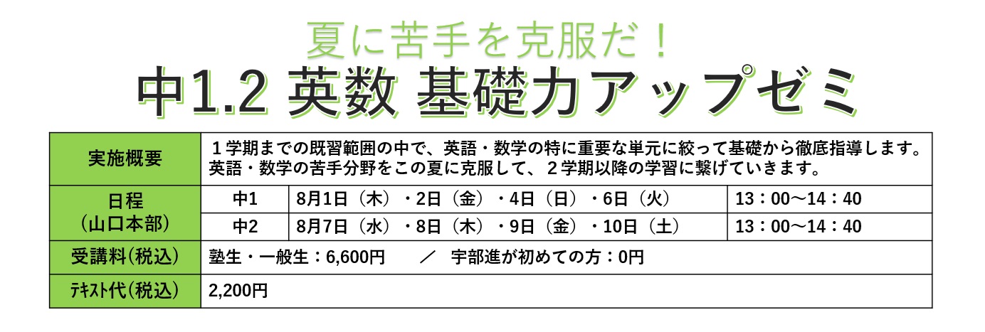 【中3】弱点補強単科ゼミ&【中1.2】基礎力アップゼミ