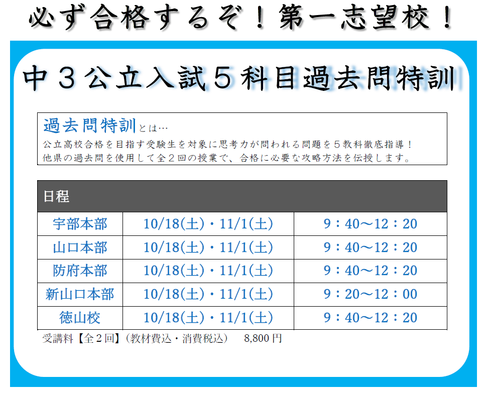 中3公立過去問特訓&高専対策